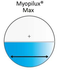Myopilux Max bifocal spectacle lenses provide both vision correction and some myopia control benefit. They are designed with prism in the addition zone to reduce disturbance to the binocular vision system. A three-year clinical trial showed a moderate effect in slowing myopia progression with this lens design. Where available, newer myopia control spectacle lenses such as Essilor® Stellest® may provide stronger results.