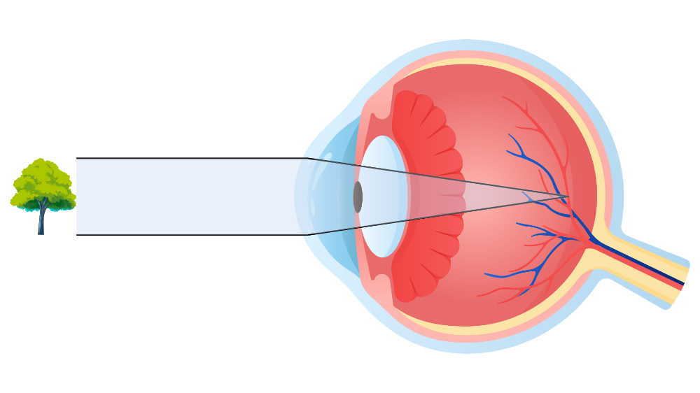 Hyperopia, also known as far-sightedness, is another type of refractive error in which near objects appear blurry while distant objects can be seen more clearly. This occurs when the eye’s overall focusing power is too weak, often due to a shorter eyeball or a flatter cornea. As a result, light entering the eye is not focused in time and would come to a focal point behind the retina rather than directly on it, leading to blurred near vision.