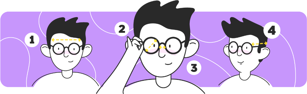 When selecting an appropriate spectacle frame for your child, consider their head size and facial features. The image below shows four key areas where frame fits can be evaluated for suitability.