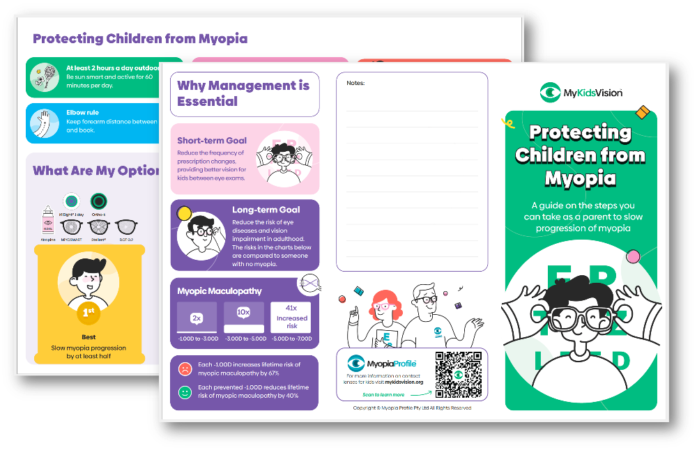 Once your child's optometrist or eye doctor has taken you through a discussion using the Infographics to explain myopia, you may be provided this take-home brochure as a reminder of the discussion.