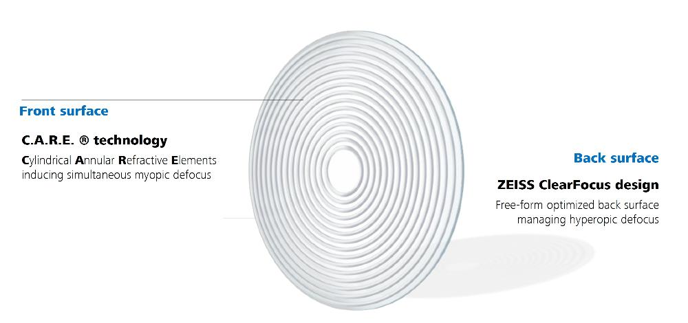 C.A.R.E. technology and ClearFocus design in a MyoCare lens. Image source: ZEISS