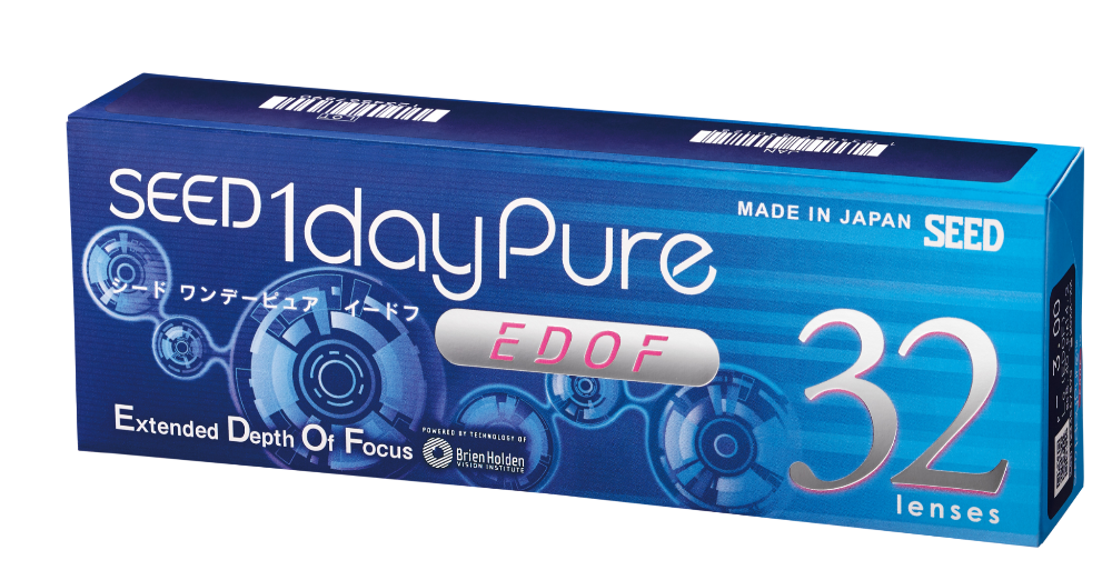 SEED 1dayPure EDOF is a daily disposable soft contact lens made in Japan. It was developed with the Brien Holden Vision Institute and uses Extended Depth-of-Focus (EDOF) technology to give clear vision at all distances while reducing ghosting and halos. The lens was designed to support both early myopia management and presbyopia, offering a smooth visual experience for everyday activities. Its effectiveness for myopia management has been tested in a 12-month clinical trial.