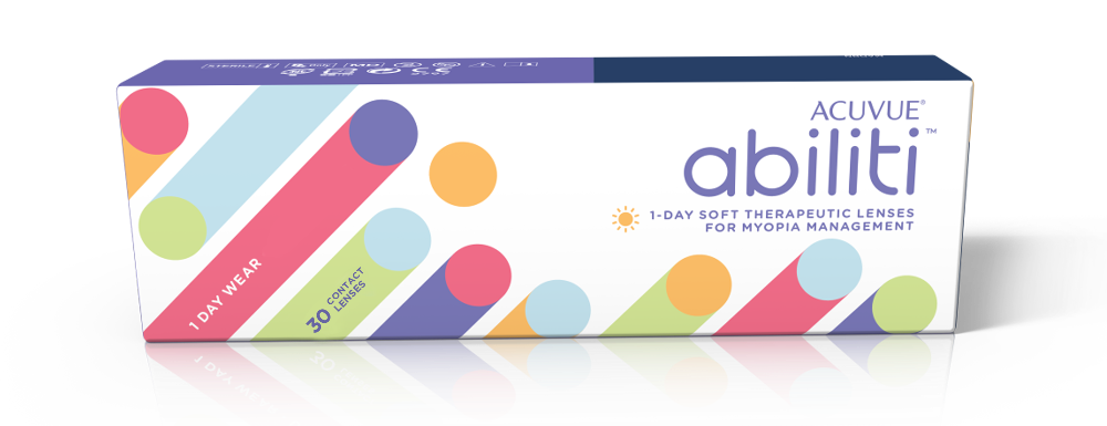 Abiliti™ 1-Day are soft contact lenses designed to slow the progression of myopia in children. They use RingBoost™ technology to maintain clear vision while delivering strong treatment power. Abiliti™ 1-Day lenses may become a first-choice option for managing progressive myopia in children. Early results from a clinical trial, with six months of data published so far, show promising outcomes.